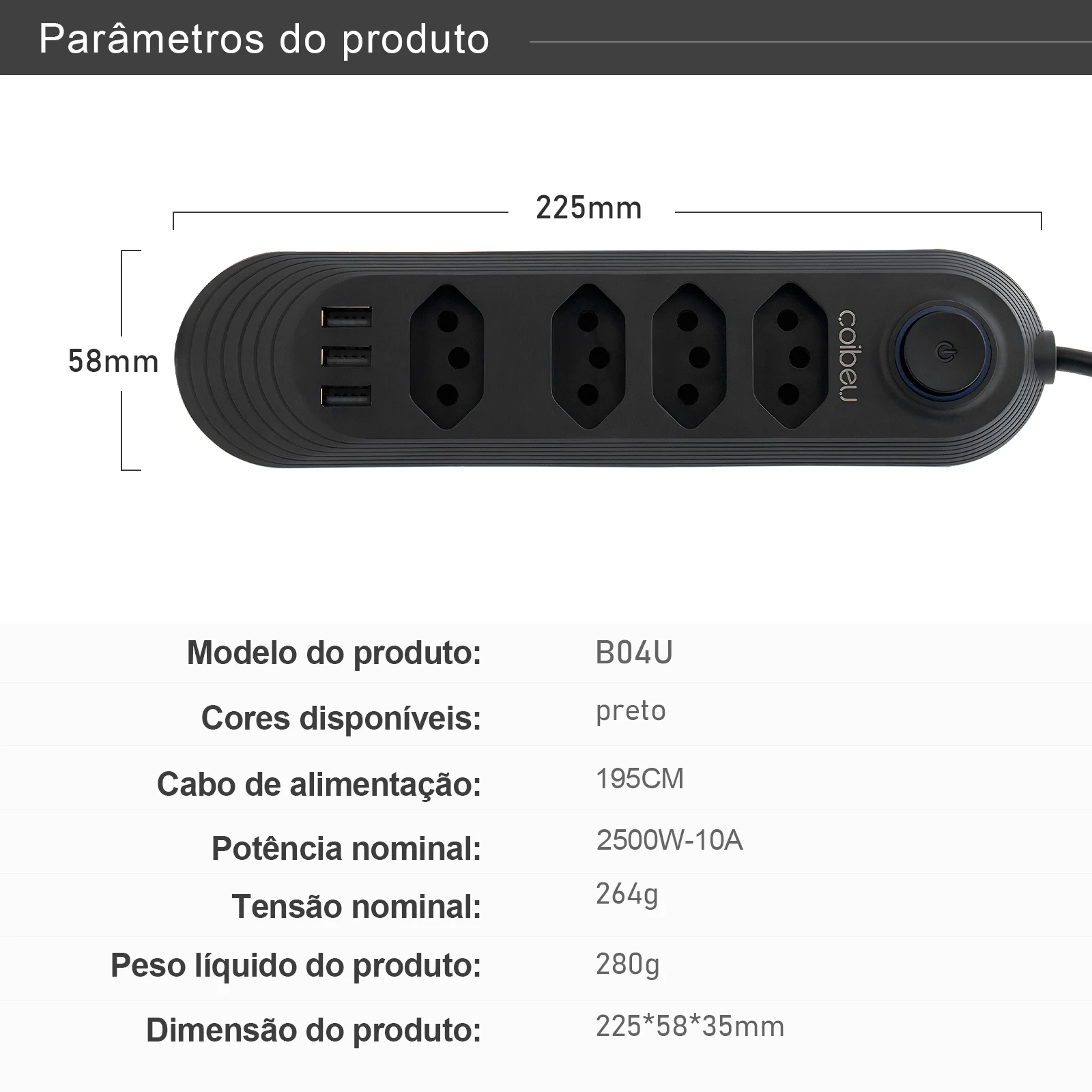 Compatibilidade de tomadas | 4 tomadas c/ 3 Usb |